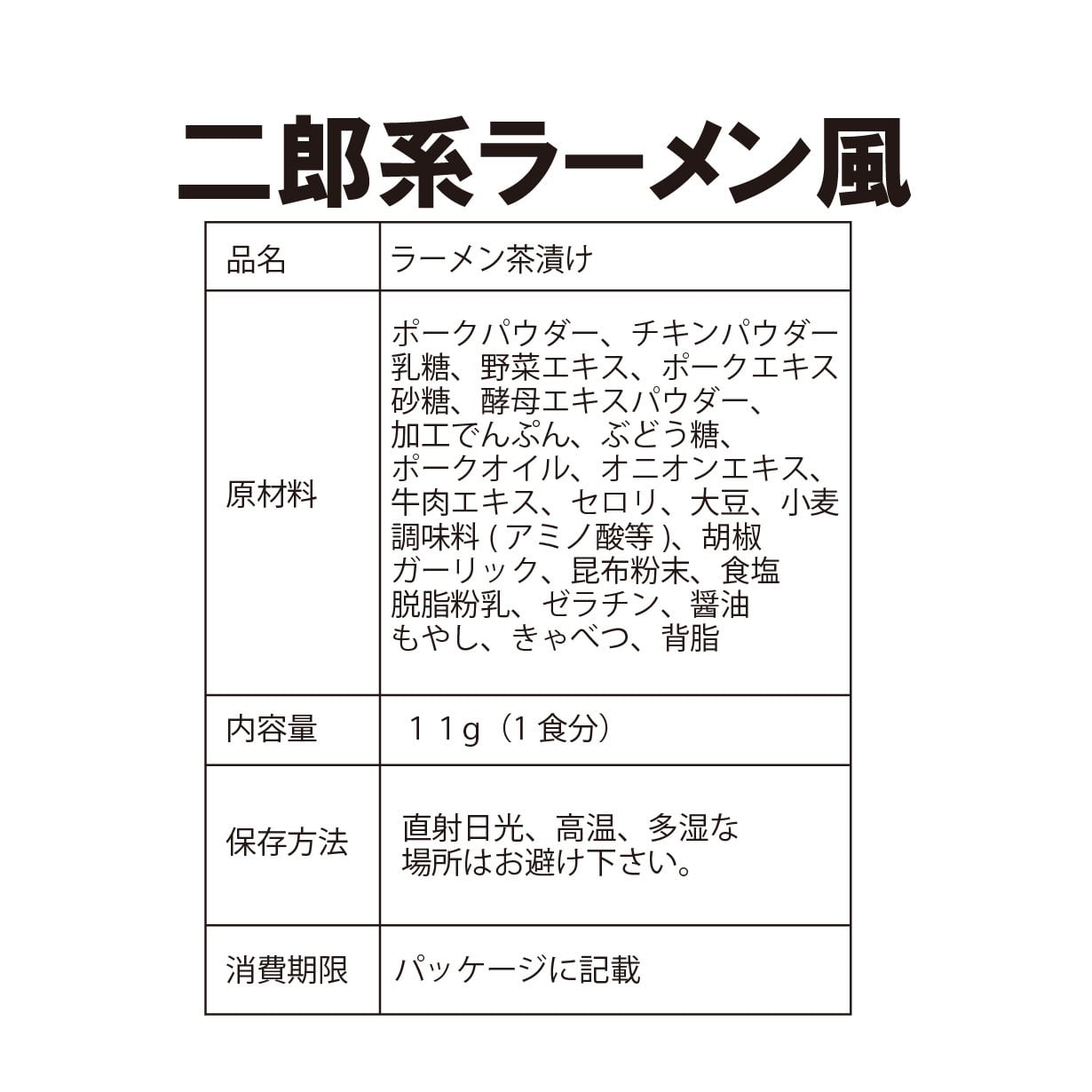 マシマシ二郎系らーめん風茶漬け! 濃厚な味わいの豚骨スープとたっぷり野菜、まるでラーメンを楽しんでいるかのような新感覚の茶漬けです。ご飯にかけるだけで手軽に楽しめるので、忙しい日常でも本格的な味わいを味わえます!