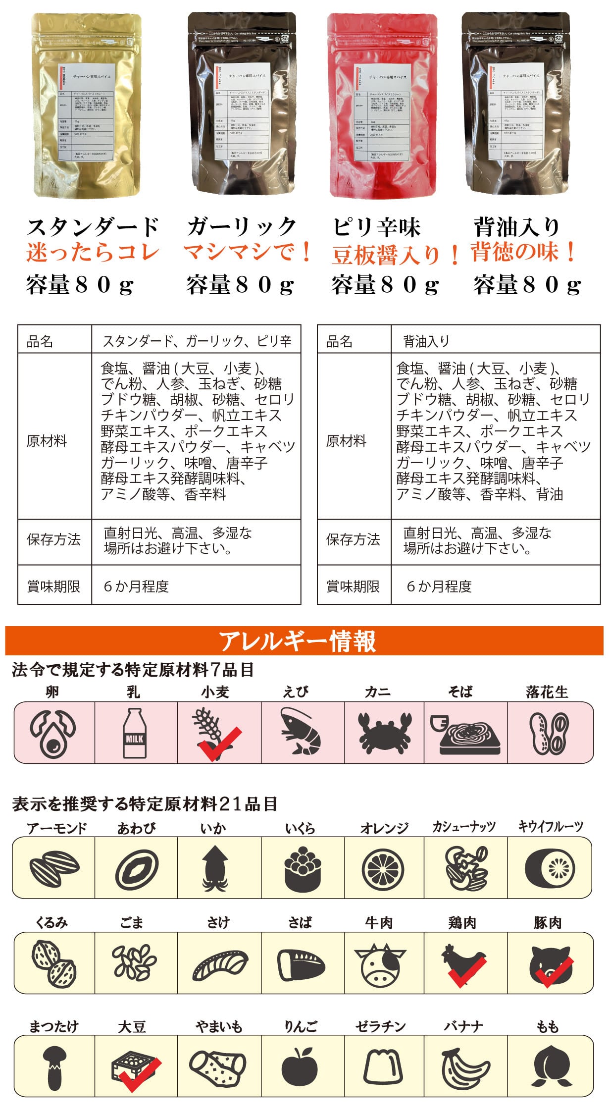 保存方法、賞味期限、内容量は同一です。